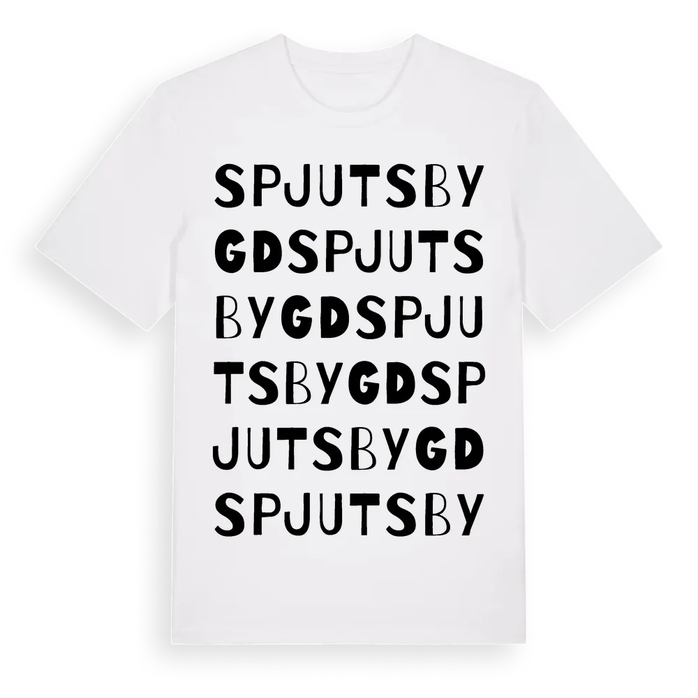 Spjutsbygd ordlek t-shirt är inspirerad av byn Spjutsbygd i Blekinge län, Sverige. Tröjan är designad för dig som har en speciell koppling till platsen – oavsett om du bor här, har rötterna här eller bara älskar Spjutsbygd.
