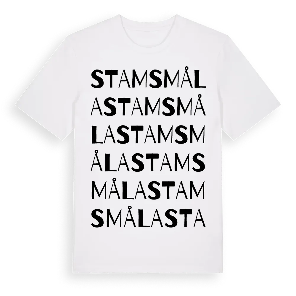 Stamsmåla ordlek t-shirt är inspirerad av Stamsmåla i Blekinge län, Sverige. Tröjan är designad för dig som har en speciell koppling till platsen – oavsett om du bor här, har rötterna här eller bara älskar Stamsmåla.