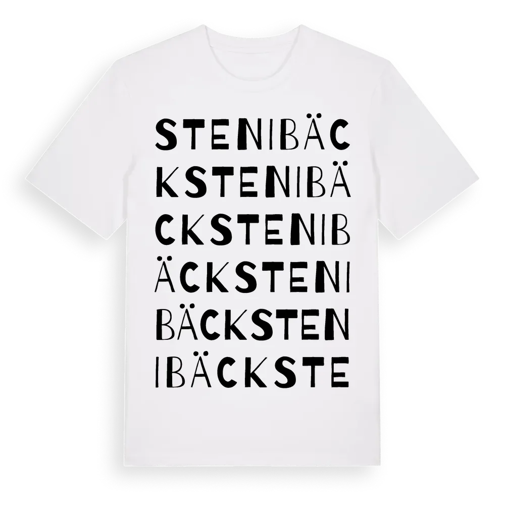 Stenibäck ordlek t-shirt är inspirerad av Stenibäck i Blekinge län, Sverige. Tröjan är designad för dig som har en speciell koppling till platsen – oavsett om du bor här, har rötterna här eller bara älskar Stenibäck.