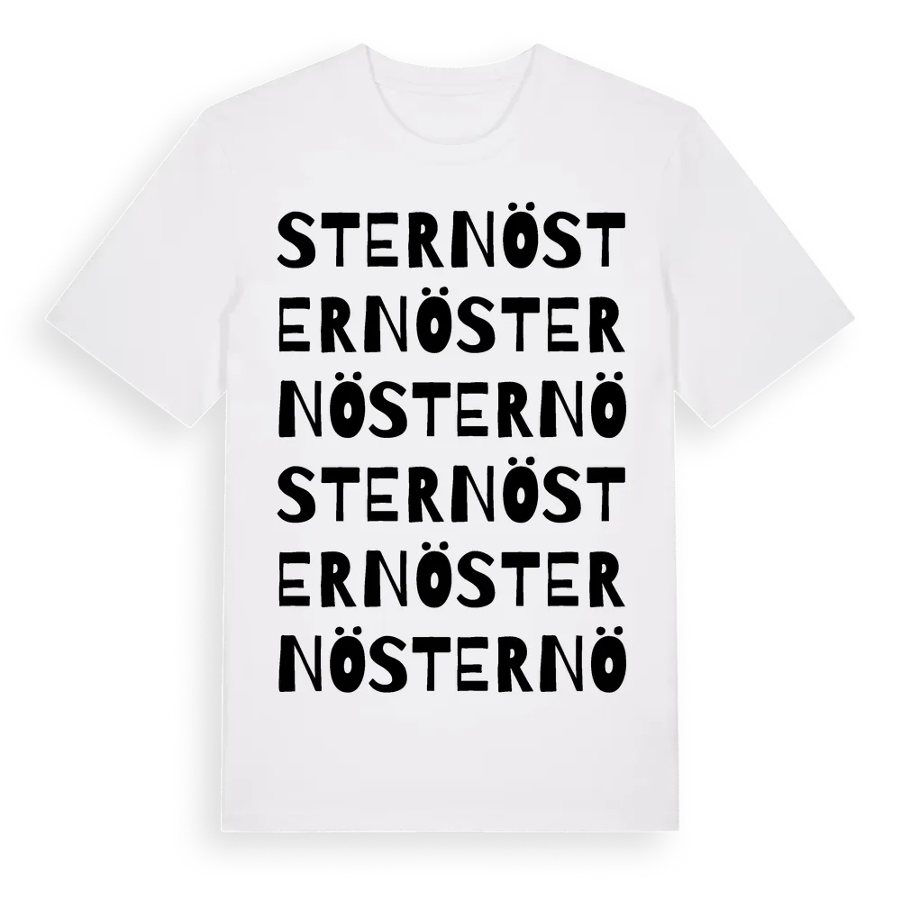Sternö ordlek t-shirt är inspirerad av byn Sternö i Blekinge län, Sverige. Tröjan är designad för dig som har en speciell koppling till platsen – oavsett om du bor här, har rötterna här eller bara älskar Sternö.