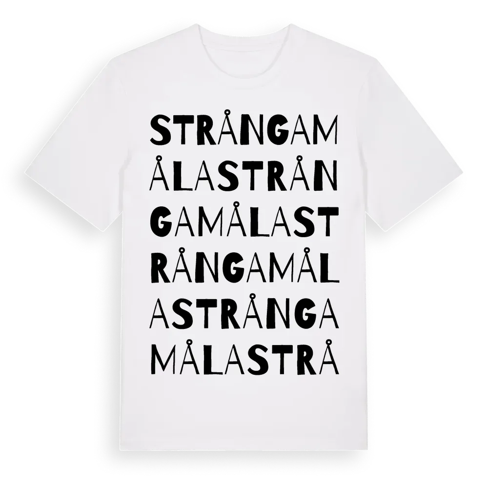 Strångamåla ordlek t-shirt är inspirerad av byn Strångamåla i Blekinge län, Sverige. Tröjan är designad för dig som har en speciell koppling till platsen – oavsett om du bor här, har rötterna här eller bara älskar Strångamåla.