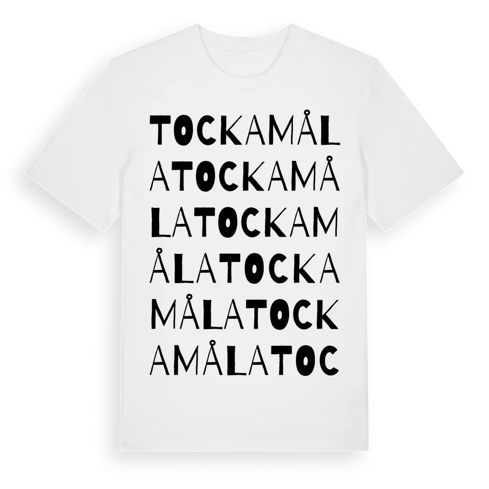 Tockamåla ordlek t-shirt är inspirerad av byn Tockamåla i Blekinge län, Sverige. Tröjan är designad för dig som har en speciell koppling till platsen – oavsett om du bor här, har rötterna här eller bara älskar Tockamåla.