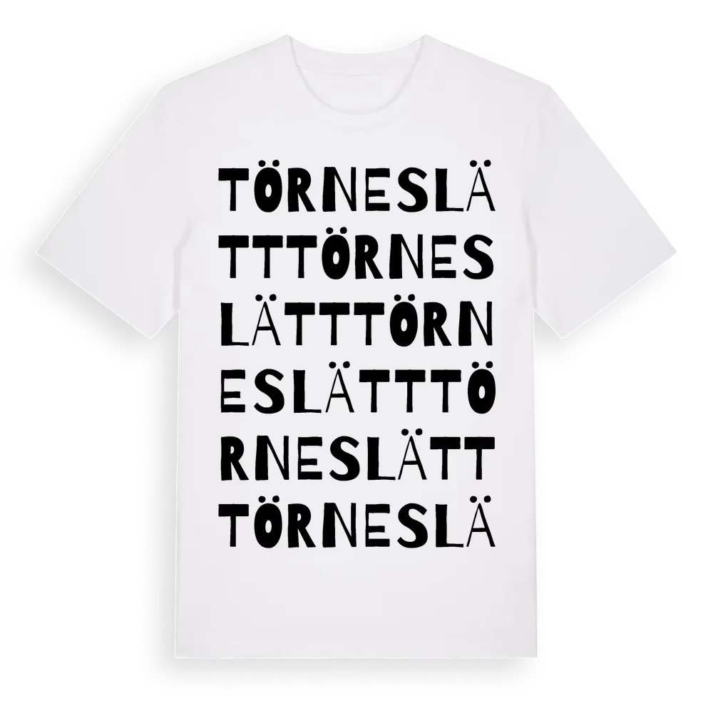 Törneslätt ordlek t-shirt är inspirerad av Törneslätt i Blekinge län, Sverige. Tröjan är designad för dig som har en speciell koppling till platsen – oavsett om du bor här, har rötterna här eller bara älskar Törneslätt.