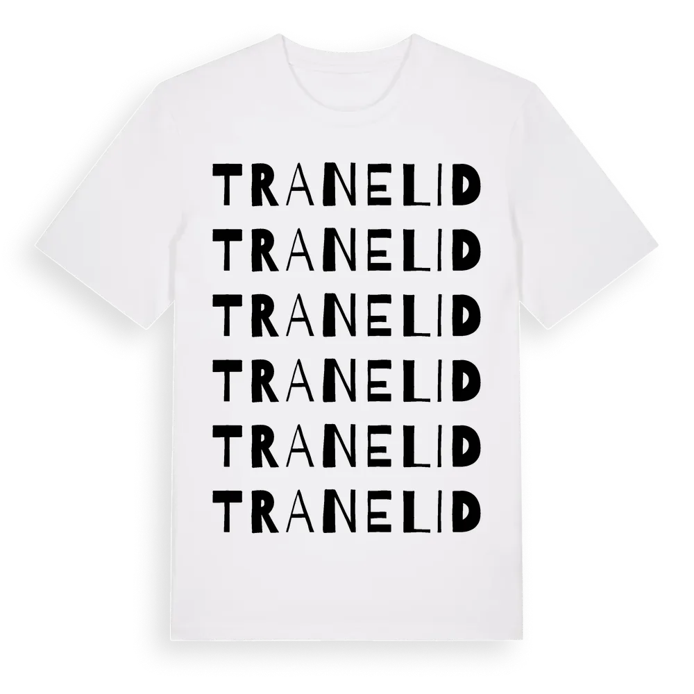 Tranelid ordlek t-shirt är inspirerad av byn Tranelid i Blekinge län, Sverige. Tröjan är designad för dig som har en speciell koppling till platsen – oavsett om du bor här, har rötterna här eller bara älskar Tranelid.