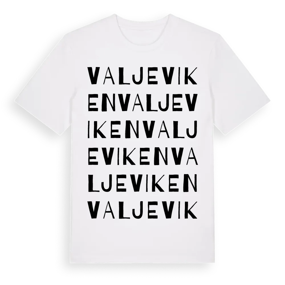Valjeviken ordlek t-shirt är inspirerad av stadsdelen Valjeviken i Blekinge län, Sverige. Tröjan är designad för dig som har en speciell koppling till platsen – oavsett om du bor här, har rötterna här eller bara älskar Valjeviken.