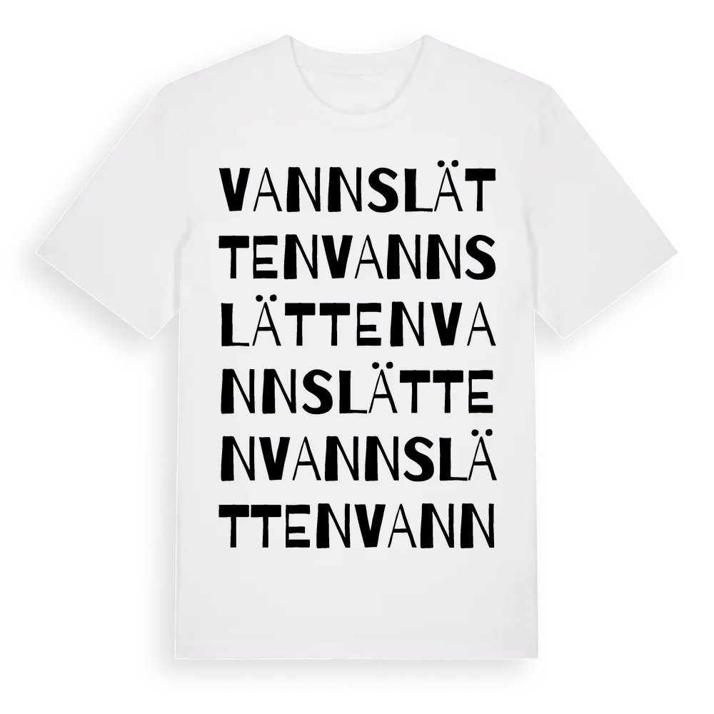 En ordlek byggd på Vannslättens namn. Subtilt och klurig – ett motiv som bara de som verkligen känner platsen fullt ut förstår. Premium bomull, unisex – från Vannslätten i Blekinge län.