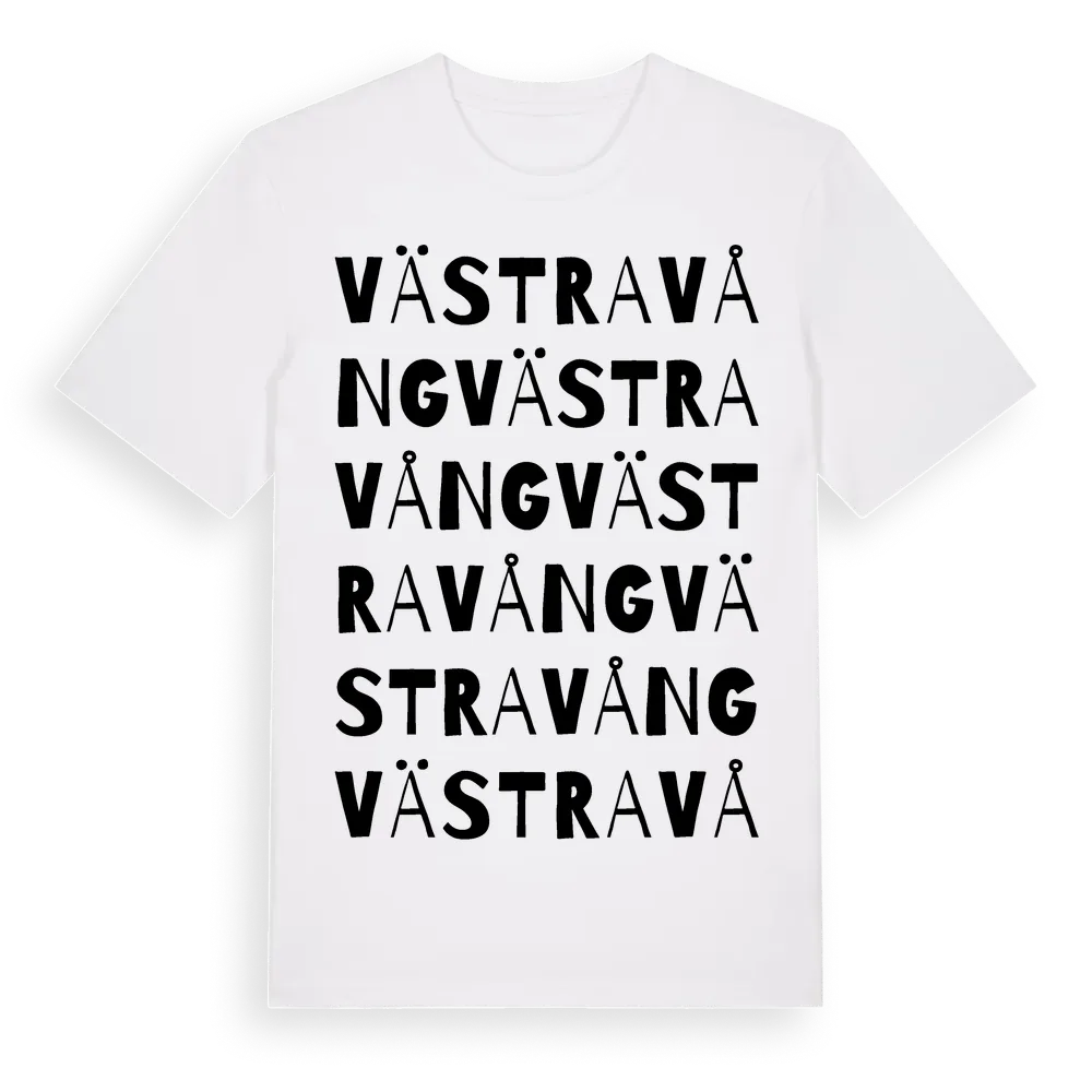 Västra Vång ordlek t-shirt är inspirerad av byn Västra Vång i Blekinge län, Sverige. Tröjan är designad för dig som har en speciell koppling till platsen – oavsett om du bor här, har rötterna här eller bara älskar Västra Vång.