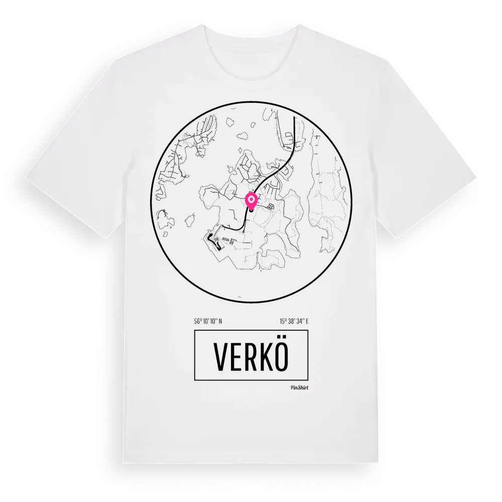 Verkö t-shirt är inspirerad av ön Verkö i Blekinge län, Sverige. Tröjan är designad för dig som har en speciell koppling till platsen – oavsett om du bor här, har rötterna här eller bara älskar Verkö.