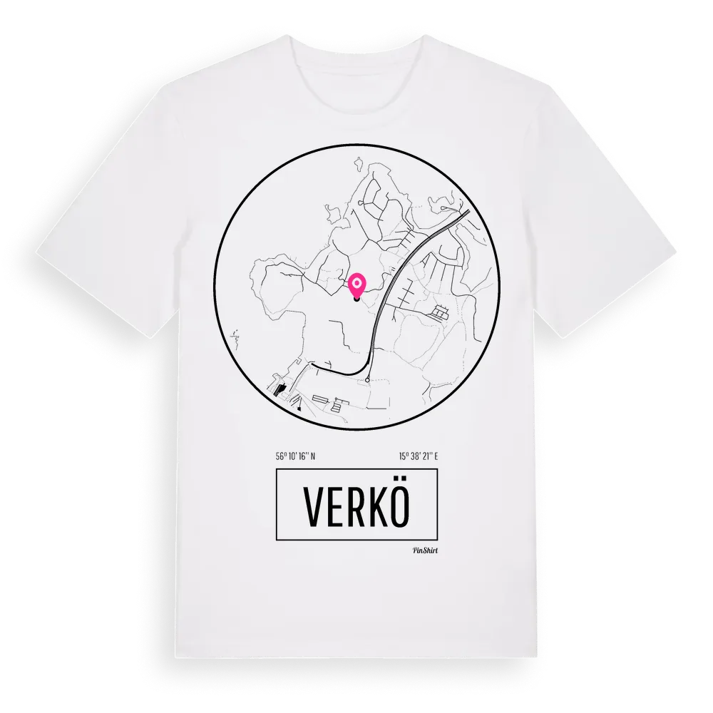 Verkö t-shirt är inspirerad av stadsdelen Verkö i Blekinge län, Sverige. Tröjan är designad för dig som har en speciell koppling till platsen – oavsett om du bor här, har rötterna här eller bara älskar Verkö.