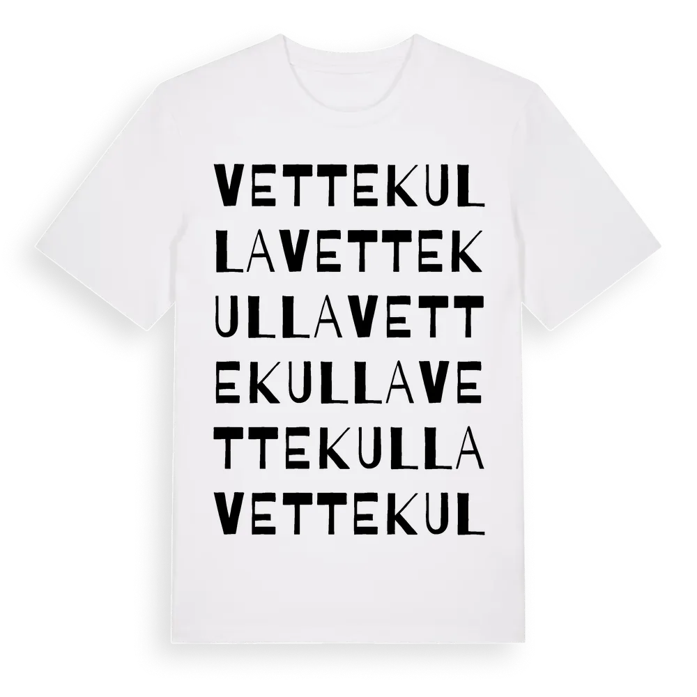 Vettekulla ordlek t-shirt är inspirerad av byn Vettekulla i Blekinge län, Sverige. Tröjan är designad för dig som har en speciell koppling till platsen – oavsett om du bor här, har rötterna här eller bara älskar Vettekulla.