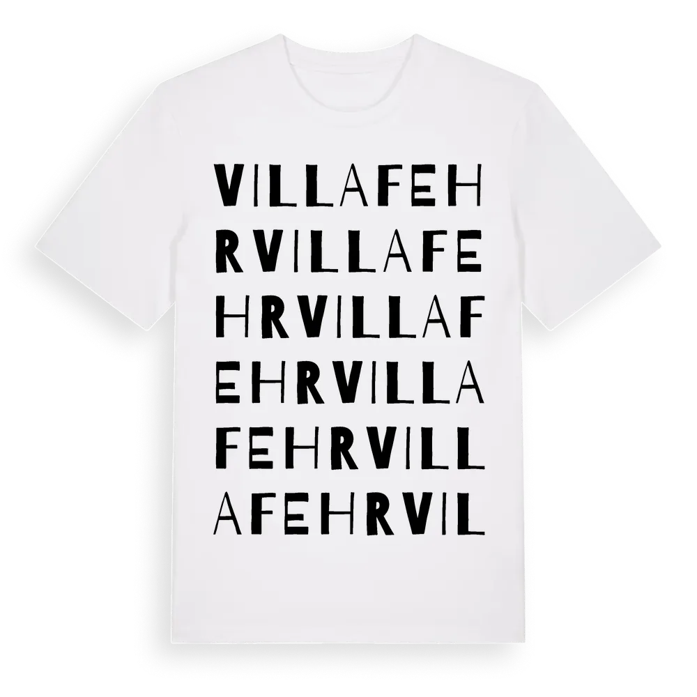 Villa Fehr ordlek t-shirt är inspirerad av stadsdelen Villa Fehr i Blekinge län, Sverige. Tröjan är designad för dig som har en speciell koppling till platsen – oavsett om du bor här, har rötterna här eller bara älskar Villa Fehr.