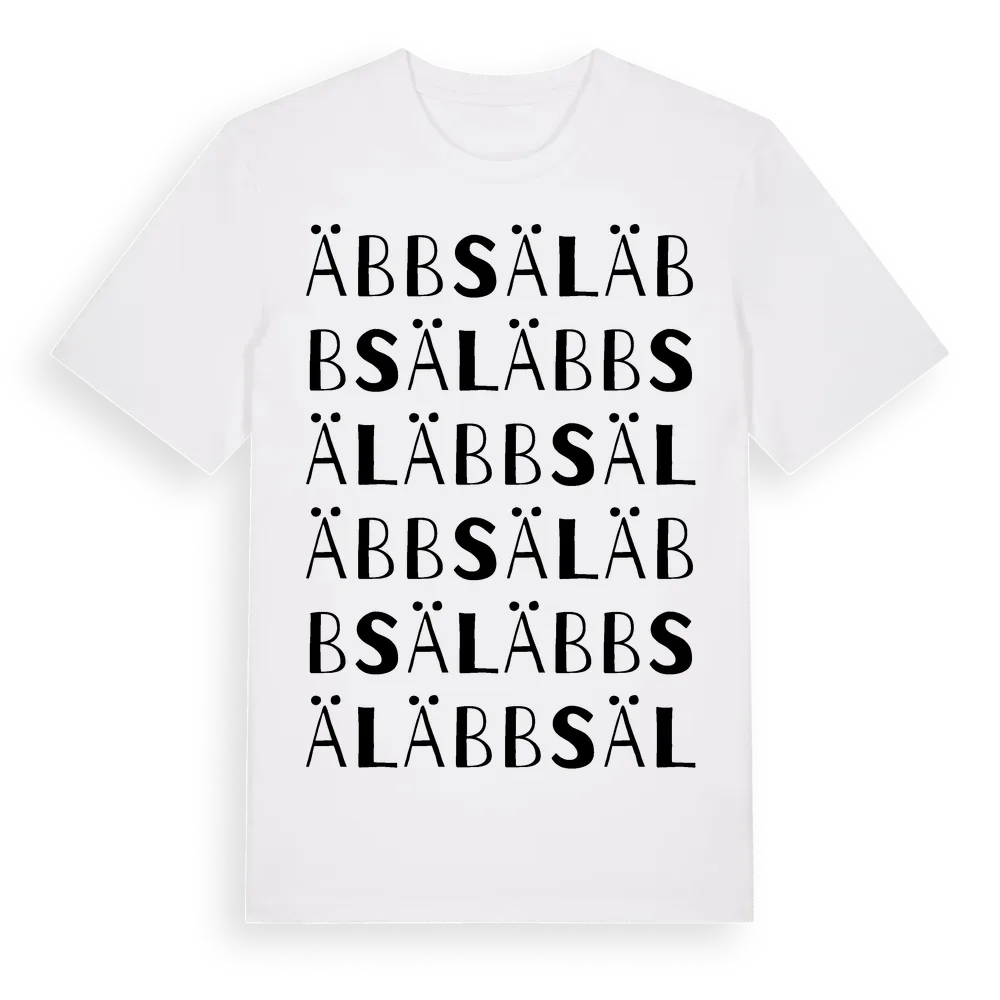 Äbbsäl ordlek t-shirt är inspirerad av byn Äbbsäl i Dalarnas län, Sverige. Tröjan är designad för dig som har en speciell koppling till platsen – oavsett om du bor här, har rötterna här eller bara älskar Äbbsäl.