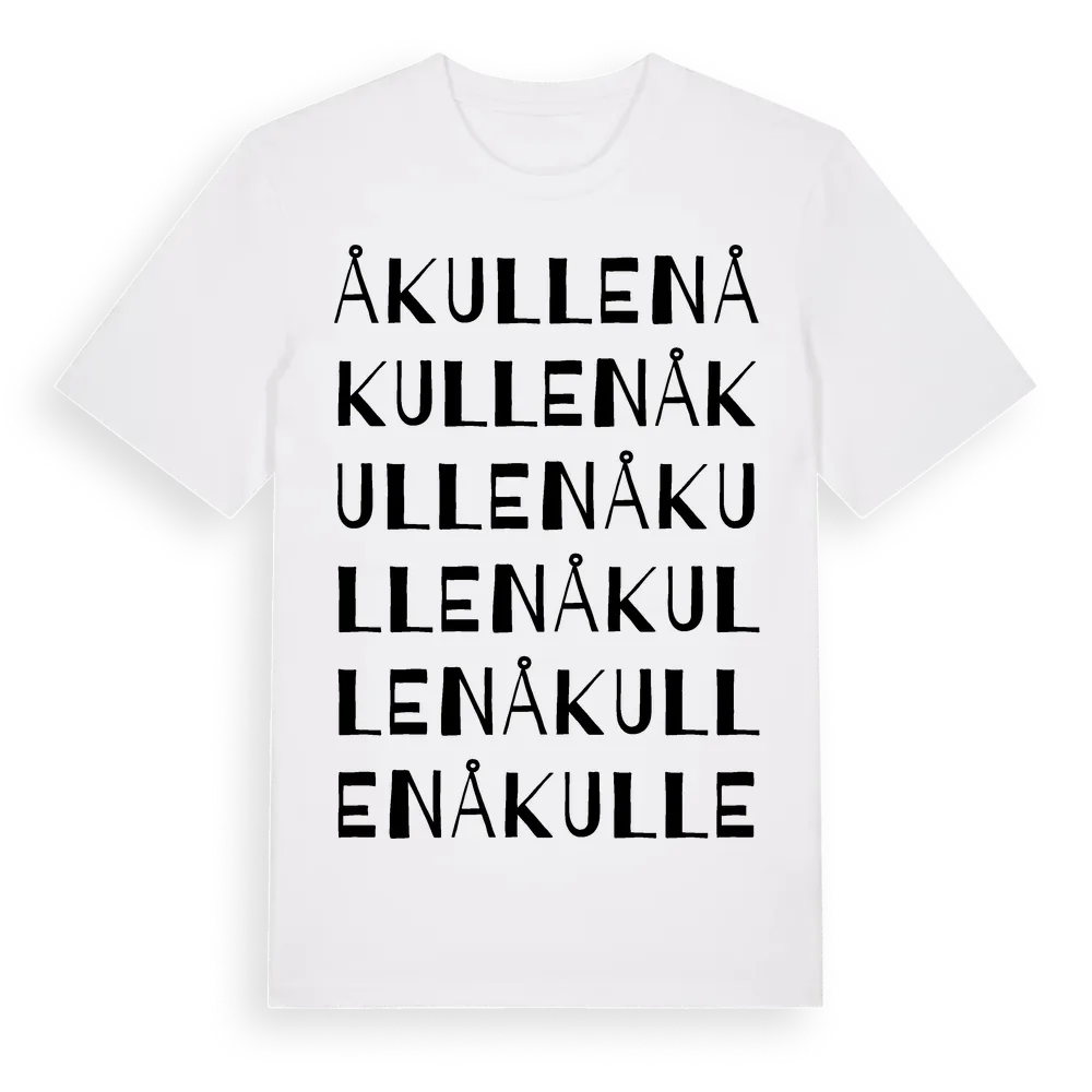Åkullen ordlek t-shirt är inspirerad av Åkullen i Dalarnas län, Sverige. Tröjan är designad för dig som har en speciell koppling till platsen – oavsett om du bor här, har rötterna här eller bara älskar Åkullen.