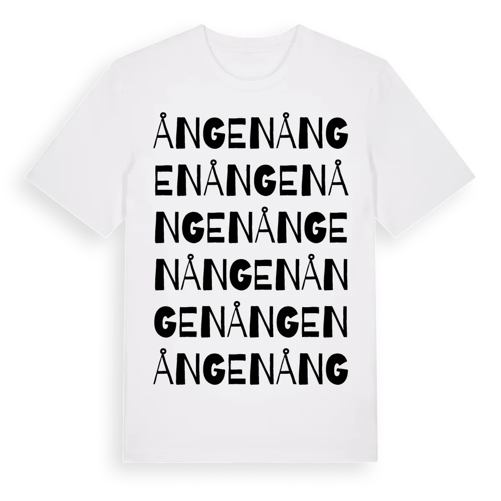 Ången ordlek t-shirt är inspirerad av byn Ången i Dalarnas län, Sverige. Tröjan är designad för dig som har en speciell koppling till platsen – oavsett om du bor här, har rötterna här eller bara älskar Ången.