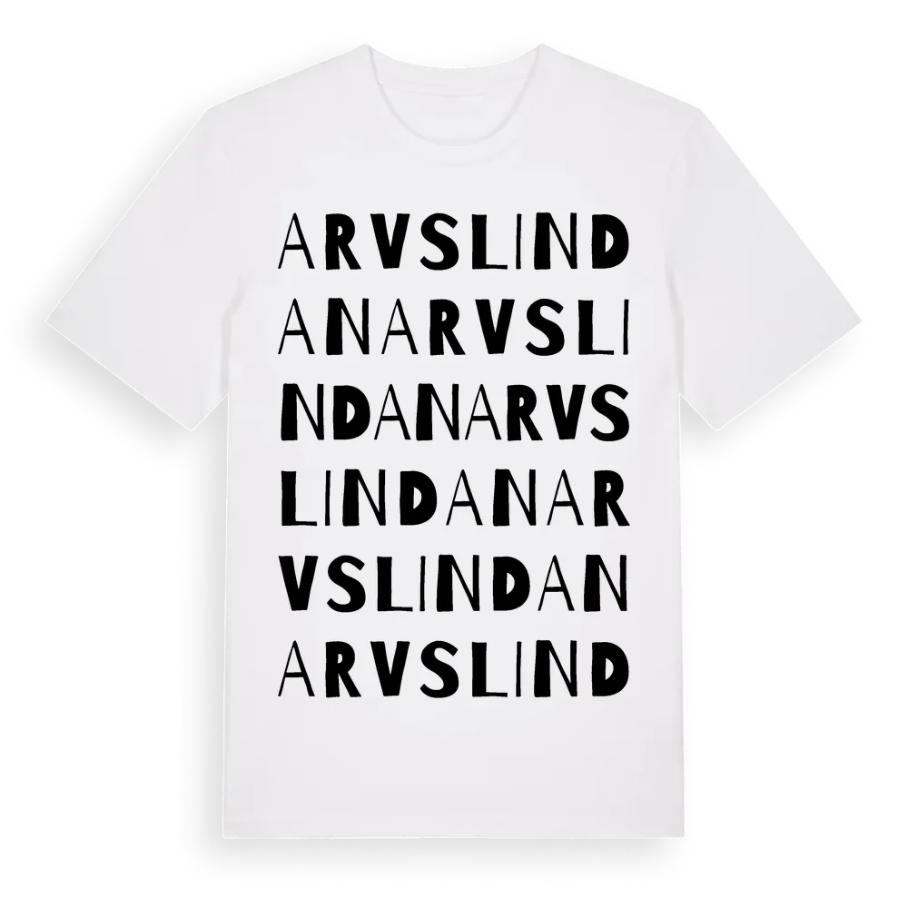 Arvslindan ordlek t-shirt är inspirerad av byn Arvslindan i Dalarnas län, Sverige. Tröjan är designad för dig som har en speciell koppling till platsen – oavsett om du bor här, har rötterna här eller bara älskar Arvslindan.