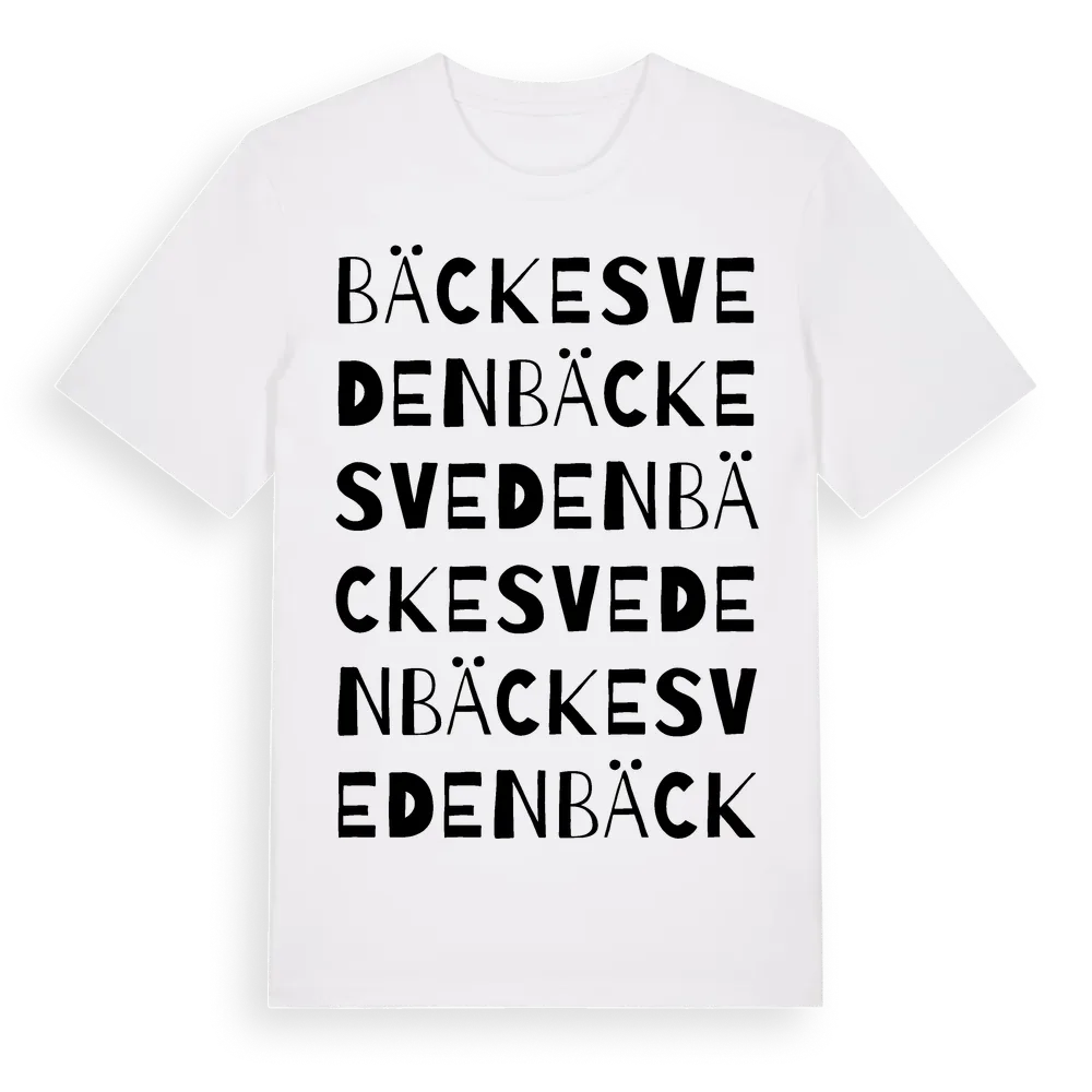 Bäckesveden ordlek t-shirt är inspirerad av Bäckesveden i Dalarnas län, Sverige. Tröjan är designad för dig som har en speciell koppling till platsen – oavsett om du bor här, har rötterna här eller bara älskar Bäckesveden.