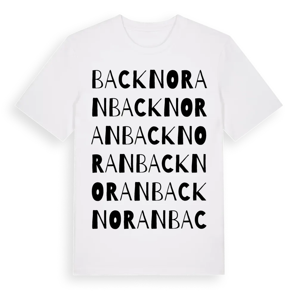 En ordlek byggd på Backnorans namn. Subtilt och klurig – ett motiv som bara de som verkligen känner platsen fullt ut förstår. Premium bomull, unisex – från Backnoran i Dalarnas län.