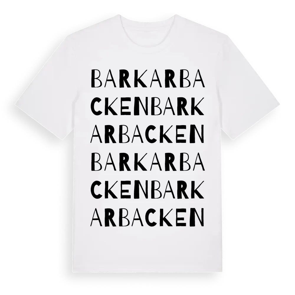 Barkarbacken ordlek t-shirt är inspirerad av Barkarbacken i Dalarnas län, Sverige. Tröjan är designad för dig som har en speciell koppling till platsen – oavsett om du bor här, har rötterna här eller bara älskar Barkarbacken.