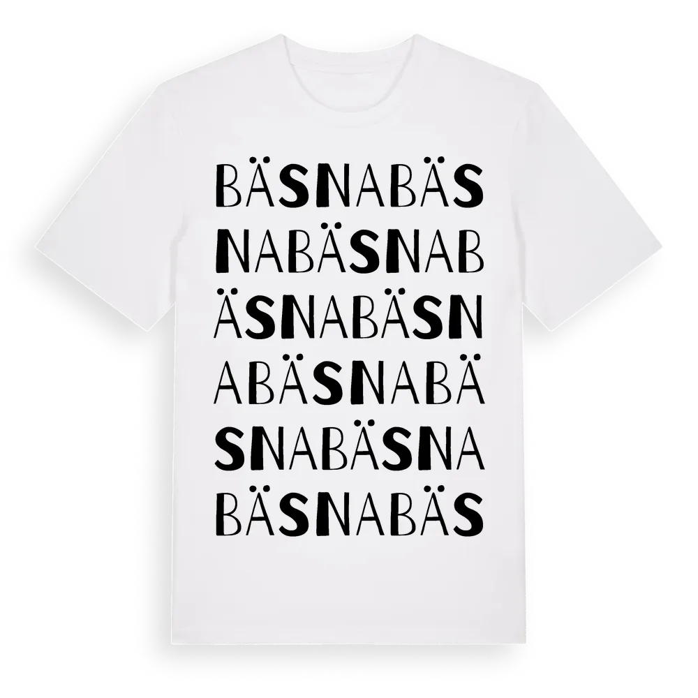 En ordlek byggd på Bäsnas namn. Subtilt och klurig – ett motiv som bara de som verkligen känner platsen fullt ut förstår. Premium bomull, unisex – från byn Bäsna i Dalarnas län.