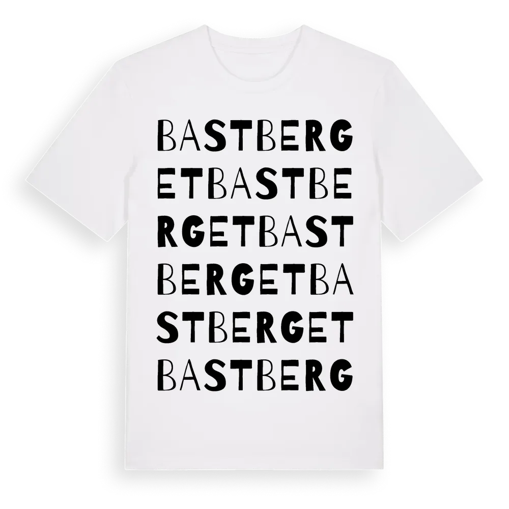 Bastberget ordlek t-shirt är inspirerad av byn Bastberget i Dalarnas län, Sverige. Tröjan är designad för dig som har en speciell koppling till platsen – oavsett om du bor här, har rötterna här eller bara älskar Bastberget.
