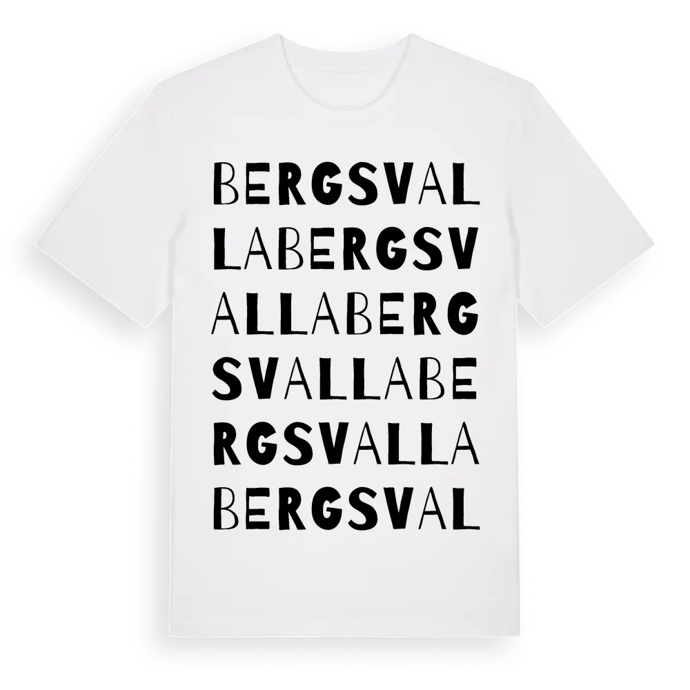 Bergsvalla ordlek t-shirt är inspirerad av byn Bergsvalla i Dalarnas län, Sverige. Tröjan är designad för dig som har en speciell koppling till platsen – oavsett om du bor här, har rötterna här eller bara älskar Bergsvalla.