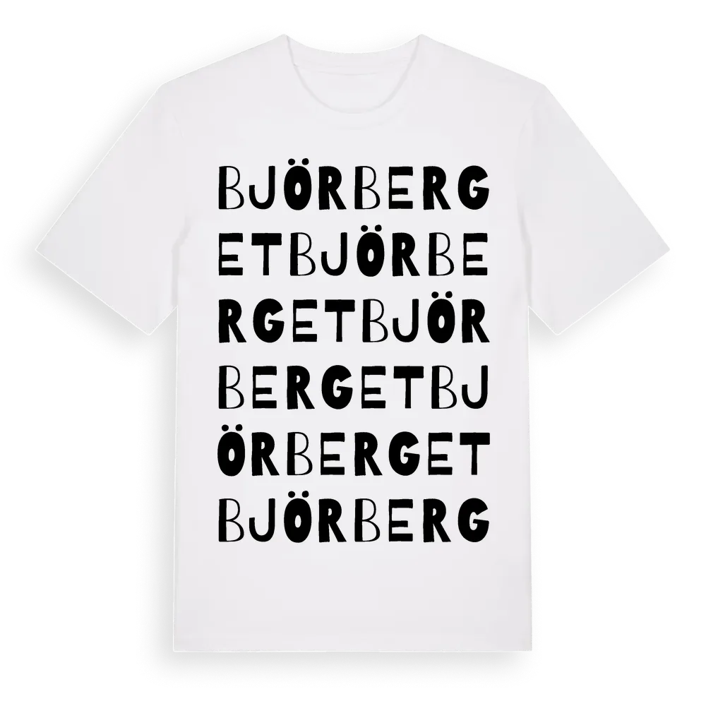 Björberget ordlek t-shirt är inspirerad av Björberget i Dalarnas län, Sverige. Tröjan är designad för dig som har en speciell koppling till platsen – oavsett om du bor här, har rötterna här eller bara älskar Björberget.