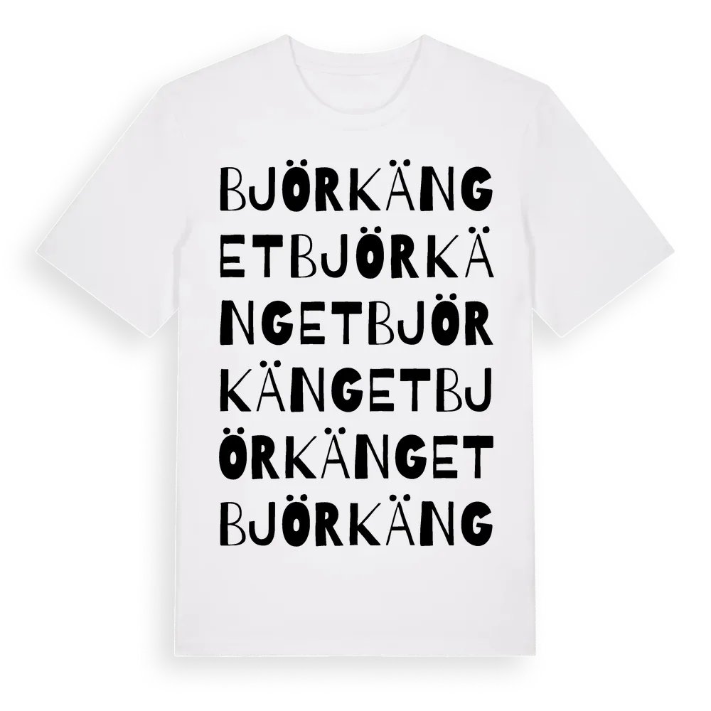 Björkänget ordlek t-shirt är inspirerad av Björkänget i Dalarnas län, Sverige. Tröjan är designad för dig som har en speciell koppling till platsen – oavsett om du bor här, har rötterna här eller bara älskar Björkänget.