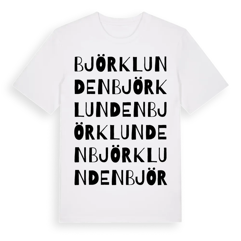 En ordlek byggd på Björklundens namn. Subtilt och klurig – ett motiv som bara de som verkligen känner platsen fullt ut förstår. Premium bomull, unisex – från Björklunden i Dalarnas län.