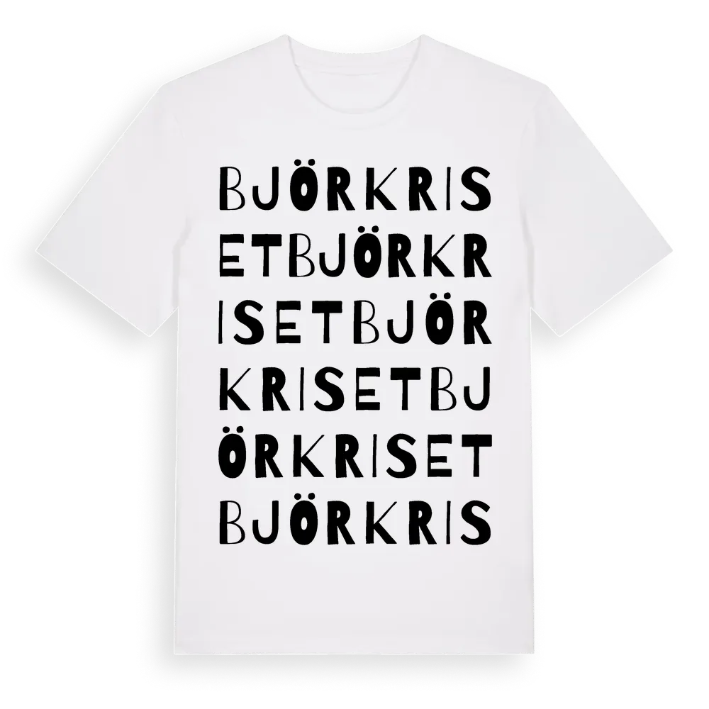 Björkriset ordlek t-shirt är inspirerad av Björkriset i Dalarnas län, Sverige. Tröjan är designad för dig som har en speciell koppling till platsen – oavsett om du bor här, har rötterna här eller bara älskar Björkriset.