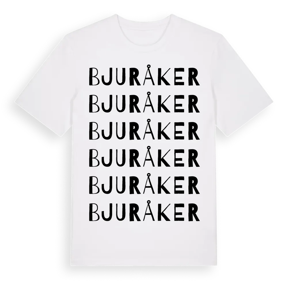 Bjuråker ordlek t-shirt är inspirerad av byn Bjuråker i Dalarnas län, Sverige. Tröjan är designad för dig som har en speciell koppling till platsen – oavsett om du bor här, har rötterna här eller bara älskar Bjuråker.