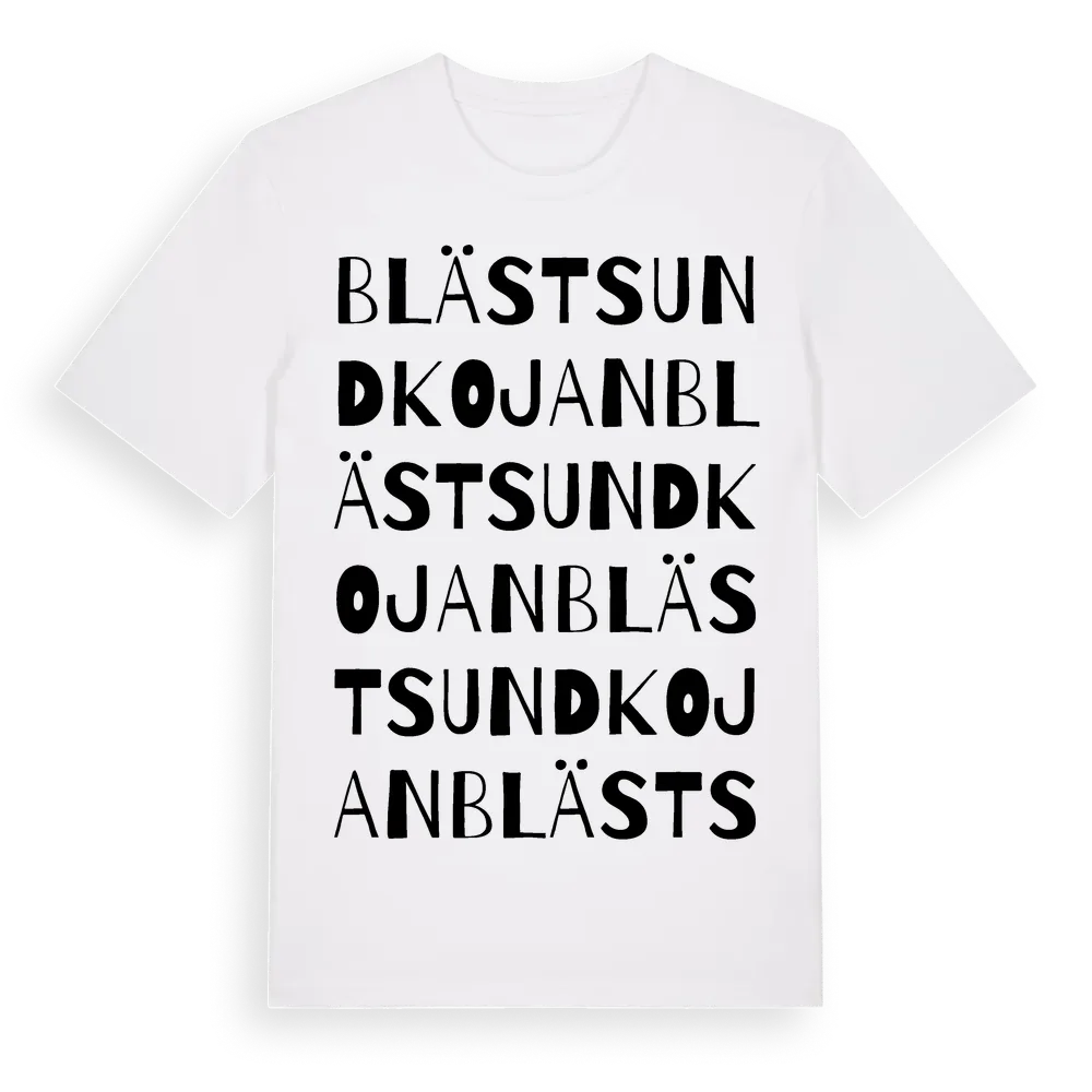 Blästsundkojan ordlek t-shirt är inspirerad av Blästsundkojan i Dalarnas län, Sverige. Tröjan är designad för dig som har en speciell koppling till platsen – oavsett om du bor här, har rötterna här eller bara älskar Blästsundkojan.
