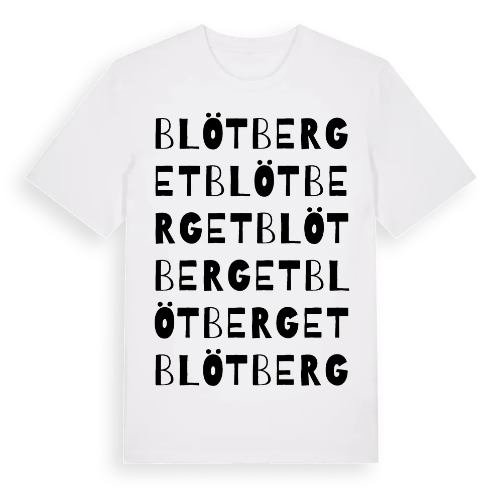 Blötberget ordlek t-shirt är inspirerad av byn Blötberget i Dalarnas län, Sverige. Tröjan är designad för dig som har en speciell koppling till platsen – oavsett om du bor här, har rötterna här eller bara älskar Blötberget.