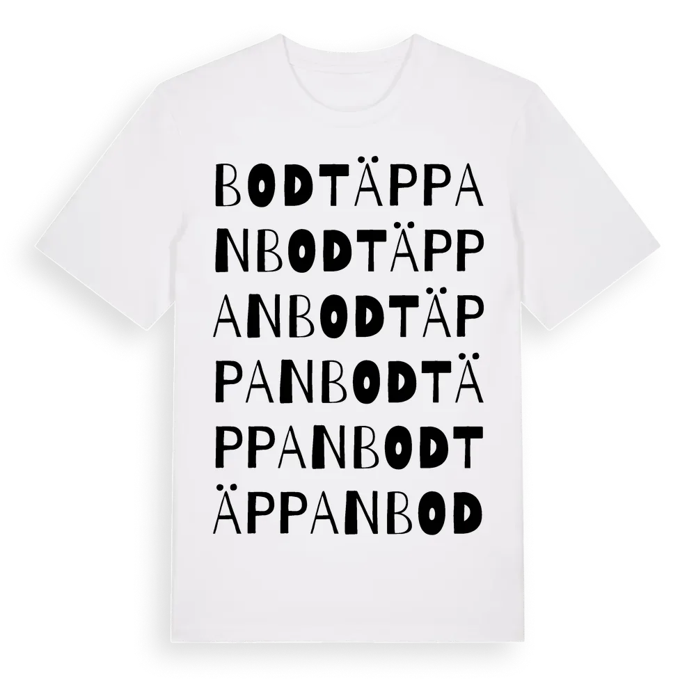 Bodtäppan ordlek t-shirt är inspirerad av byn Bodtäppan i Dalarnas län, Sverige. Tröjan är designad för dig som har en speciell koppling till platsen – oavsett om du bor här, har rötterna här eller bara älskar Bodtäppan.