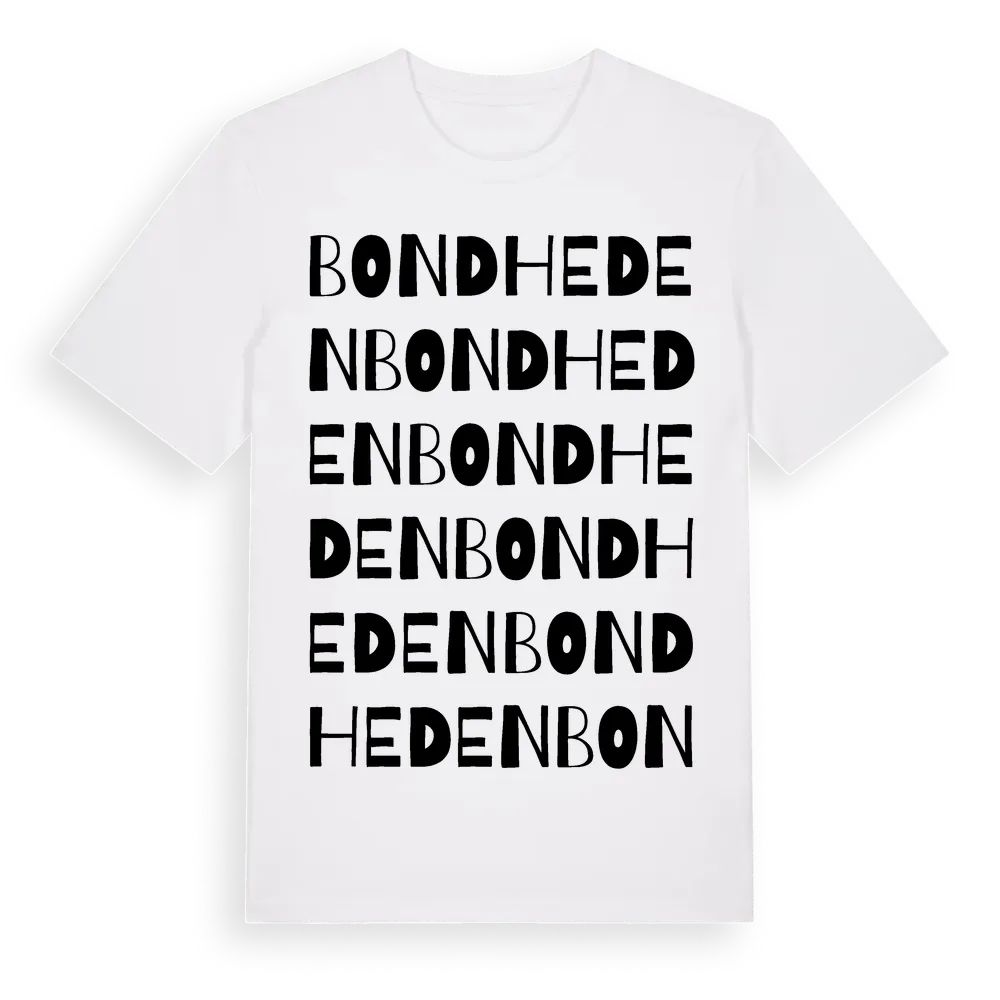 En ordlek byggd på Bondhedens namn. Subtilt och klurig – ett motiv som bara de som verkligen känner platsen fullt ut förstår. Premium bomull, unisex – från Bondheden i Dalarnas län.