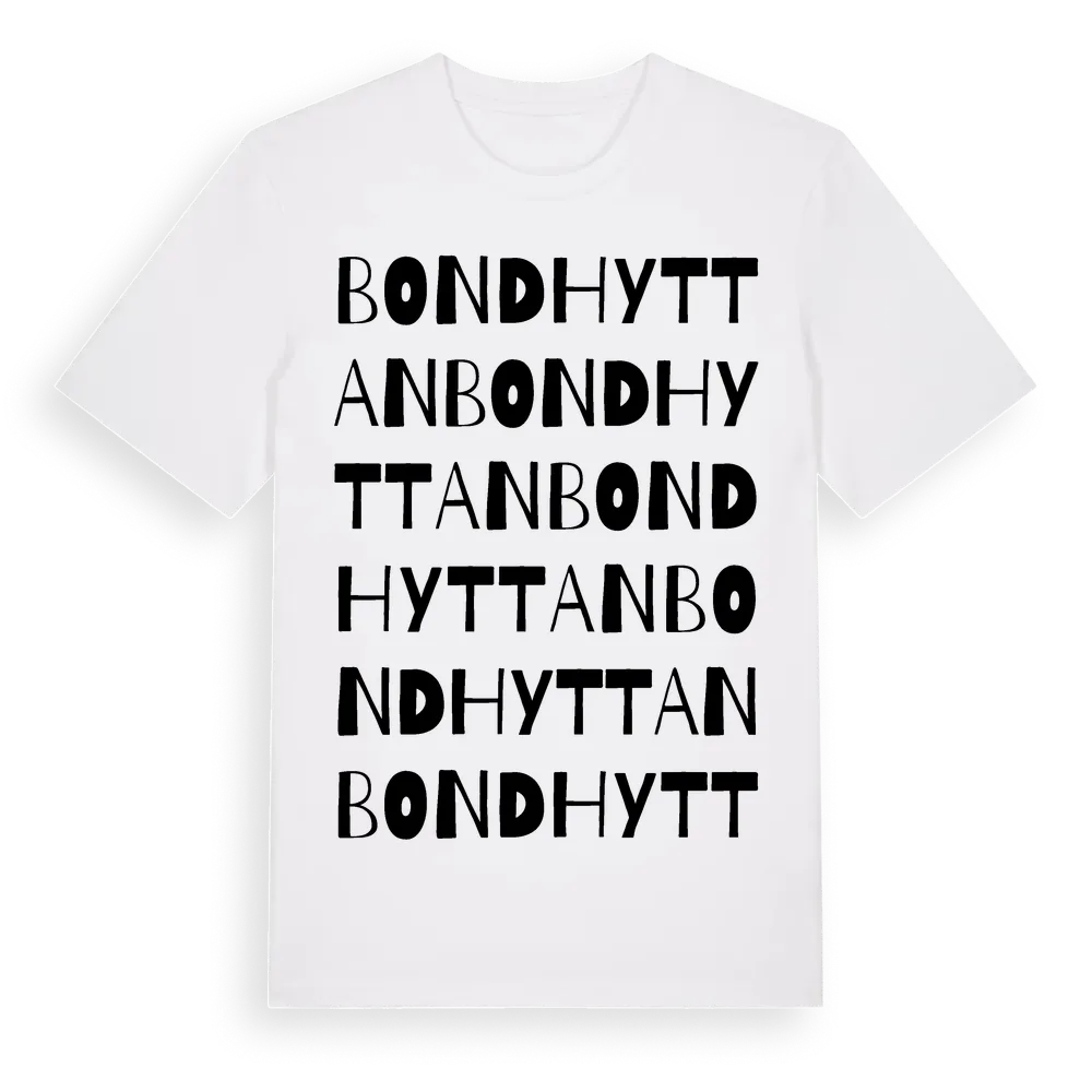 En ordlek byggd på Bondhyttans namn. Subtilt och klurig – ett motiv som bara de som verkligen känner platsen fullt ut förstår. Premium bomull, unisex – från byn Bondhyttan i Dalarnas län.