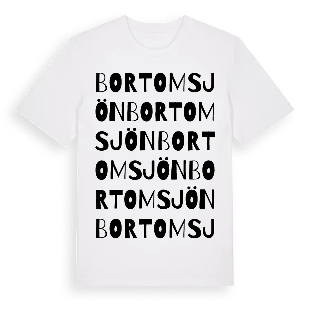 Bortom Sjön ordlek t-shirt är inspirerad av byn Bortom Sjön i Dalarnas län, Sverige. Tröjan är designad för dig som har en speciell koppling till platsen – oavsett om du bor här, har rötterna här eller bara älskar Bortom Sjön.
