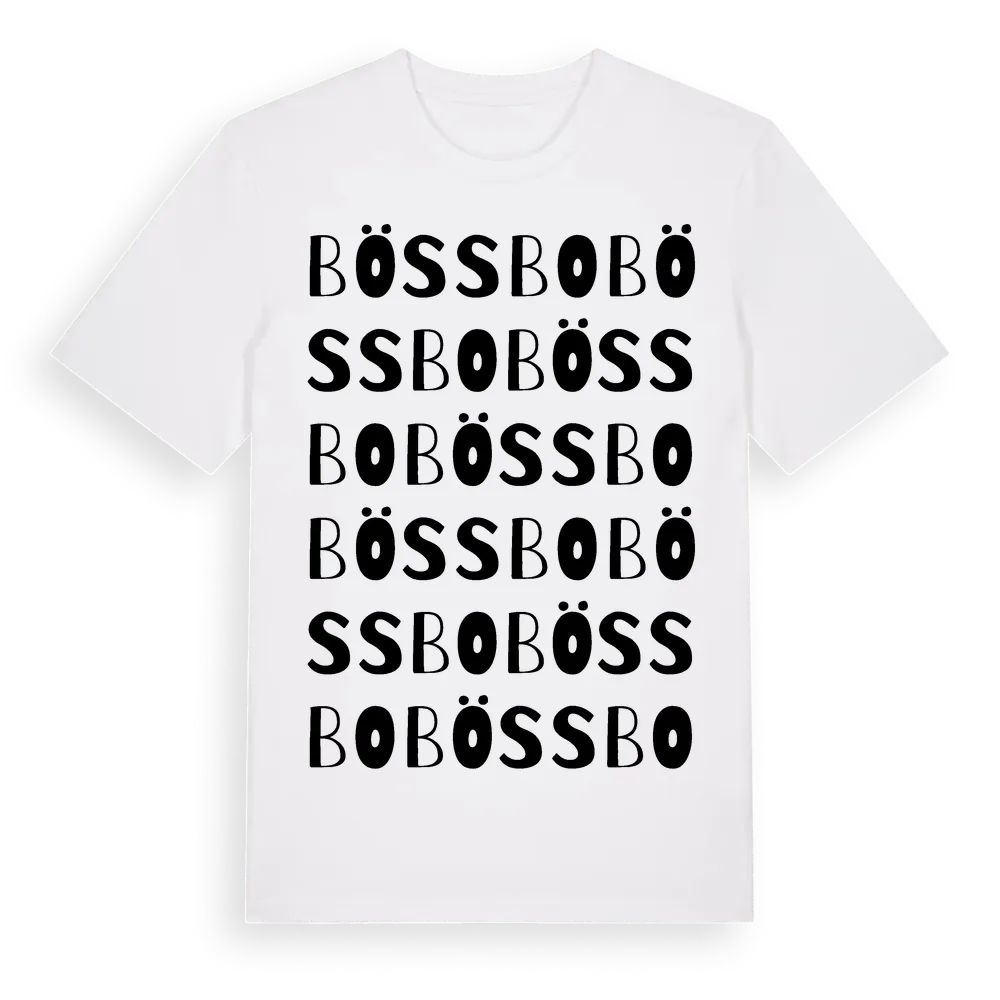 Bössbo ordlek t-shirt är inspirerad av byn Bössbo i Dalarnas län, Sverige. Tröjan är designad för dig som har en speciell koppling till platsen – oavsett om du bor här, har rötterna här eller bara älskar Bössbo.