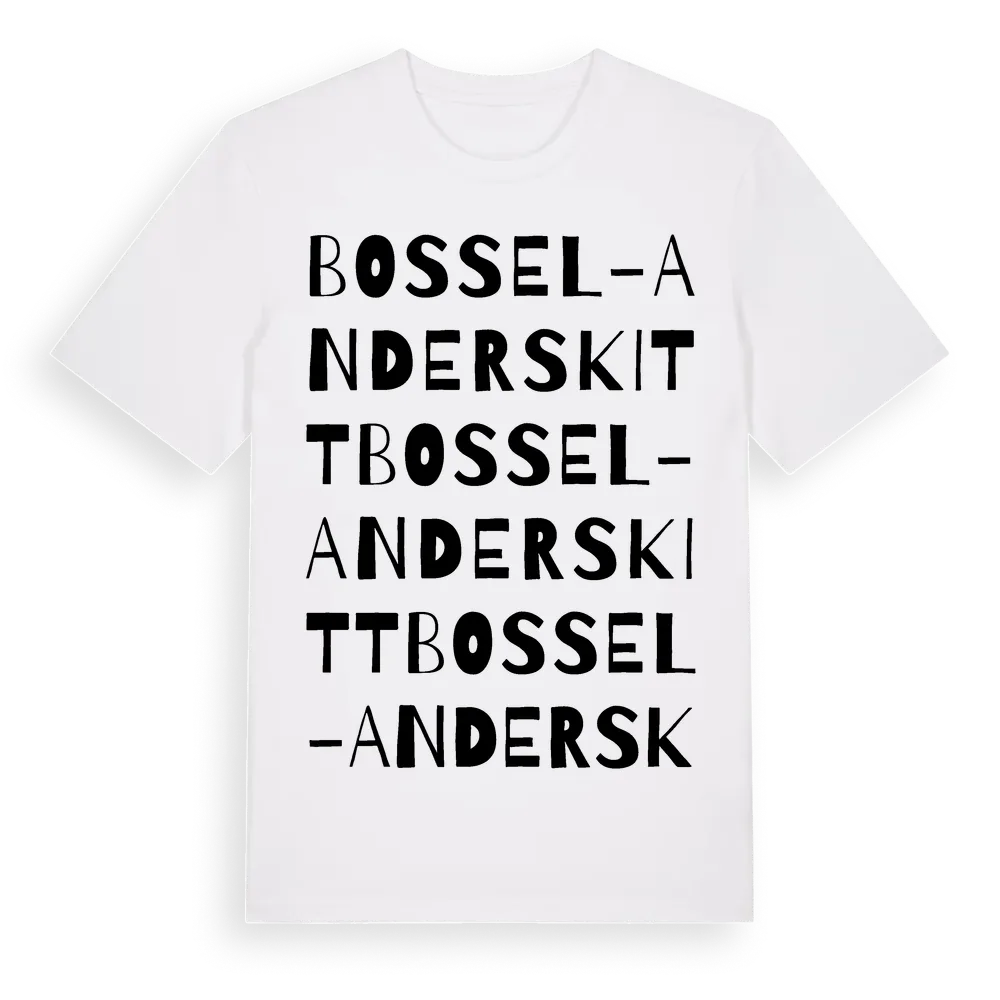 En ordlek byggd på Bossel-Anderskitts namn. Subtilt och klurig – ett motiv som bara de som verkligen känner platsen fullt ut förstår. Premium bomull, unisex – från Bossel-Anderskitt i Dalarnas län.