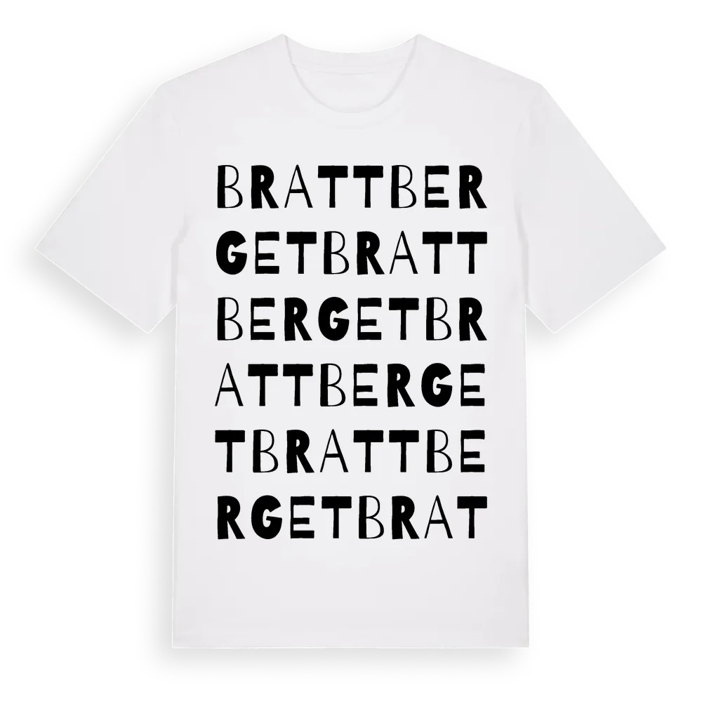 Brattberget ordlek t-shirt är inspirerad av byn Brattberget i Dalarnas län, Sverige. Tröjan är designad för dig som har en speciell koppling till platsen – oavsett om du bor här, har rötterna här eller bara älskar Brattberget.