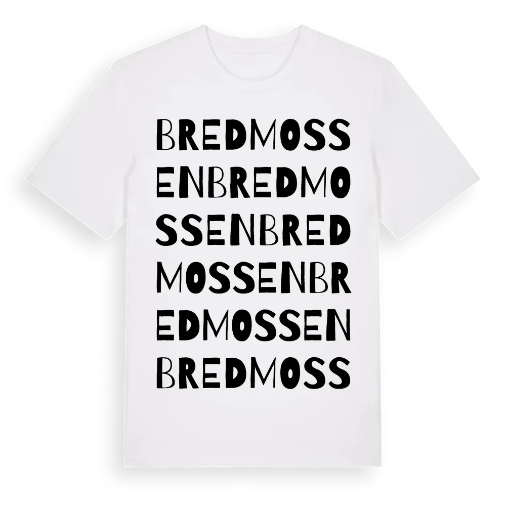 Bredmossen ordlek t-shirt är inspirerad av Bredmossen i Dalarnas län, Sverige. Tröjan är designad för dig som har en speciell koppling till platsen – oavsett om du bor här, har rötterna här eller bara älskar Bredmossen.