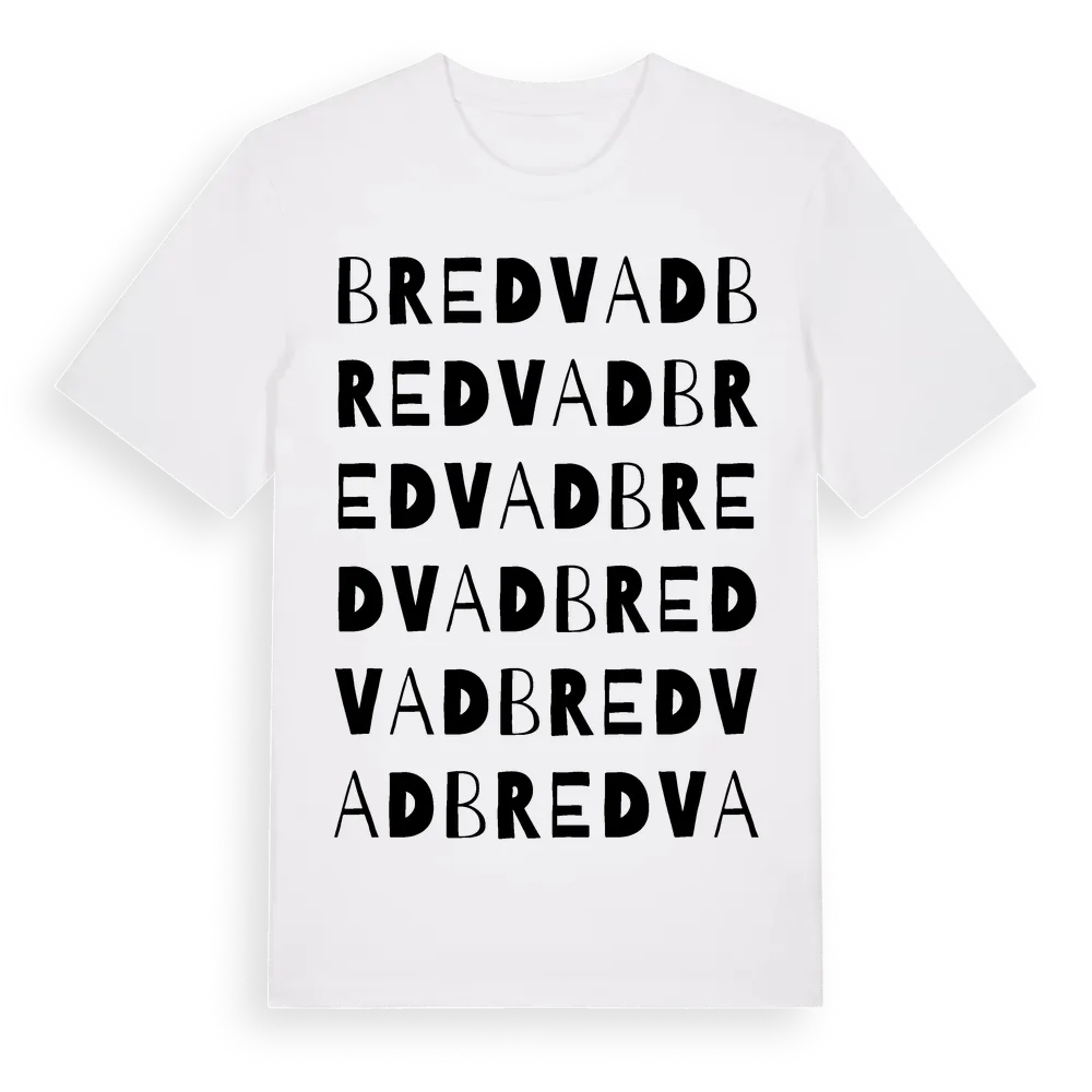 Bredvad ordlek t-shirt är inspirerad av byn Bredvad i Dalarnas län, Sverige. Tröjan är designad för dig som har en speciell koppling till platsen – oavsett om du bor här, har rötterna här eller bara älskar Bredvad.