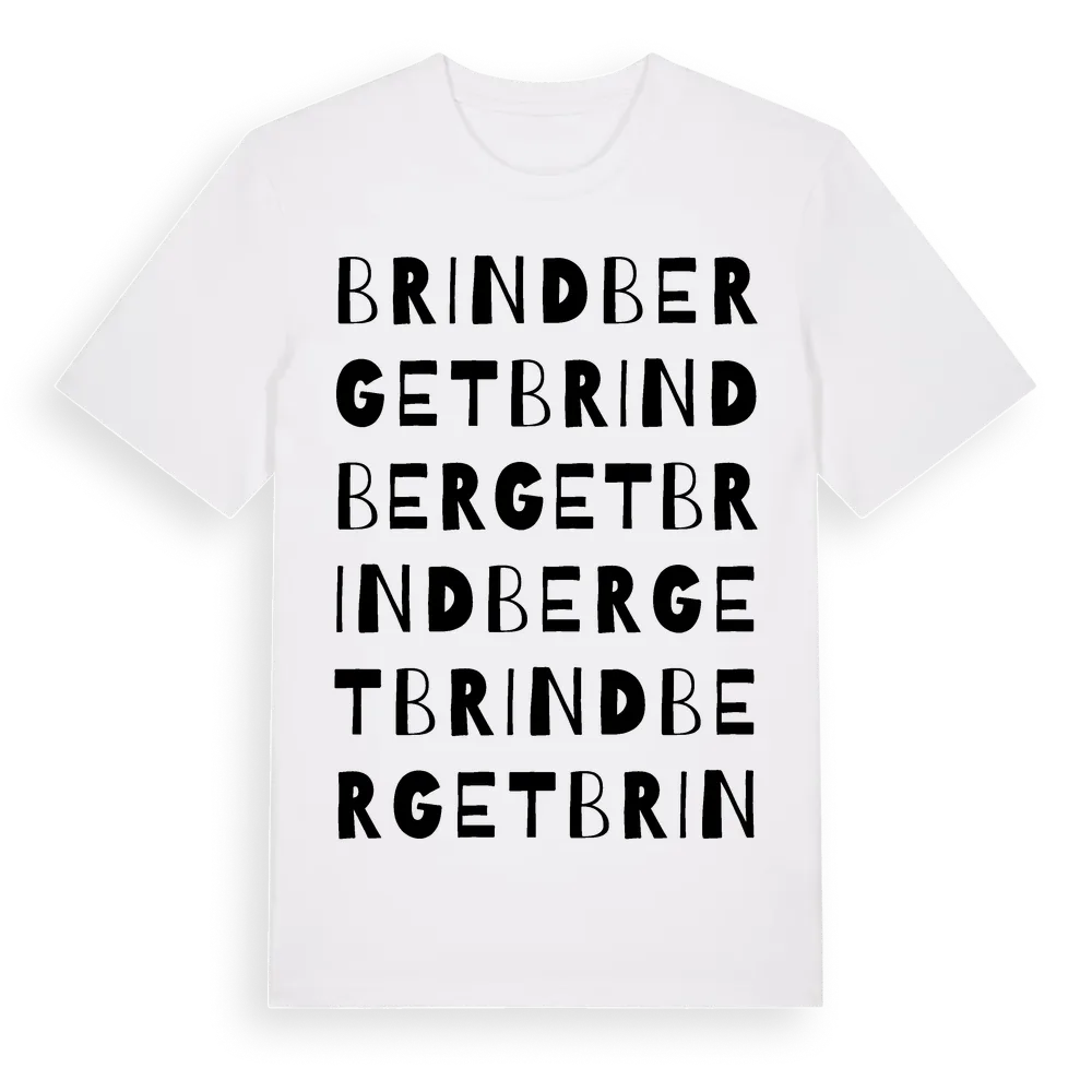 Brindberget ordlek t-shirt är inspirerad av byn Brindberget i Dalarnas län, Sverige. Tröjan är designad för dig som har en speciell koppling till platsen – oavsett om du bor här, har rötterna här eller bara älskar Brindberget.