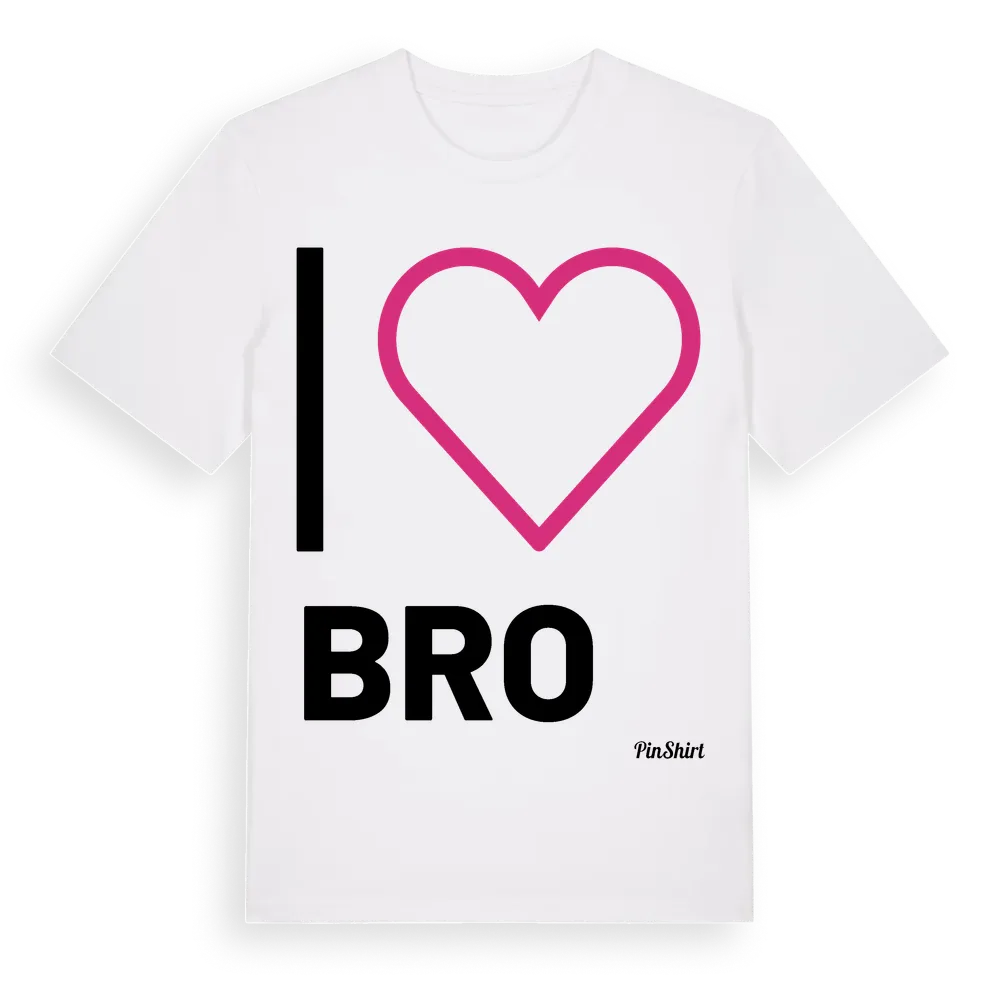 Det klassiska "I ❤ Bro"-motivet i stort format som täcker hela bröstet. För dig som vill visa kärleken till Bro på riktigt. Premium bomull, unisex – från Bro i Dalarnas län.