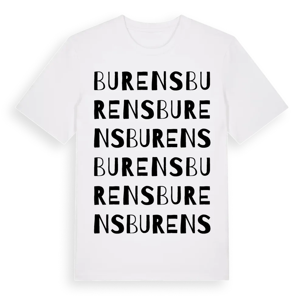 En ordlek byggd på Burenss namn. Subtilt och klurig – ett motiv som bara de som verkligen känner platsen fullt ut förstår. Premium bomull, unisex – från byn Burens i Dalarnas län.