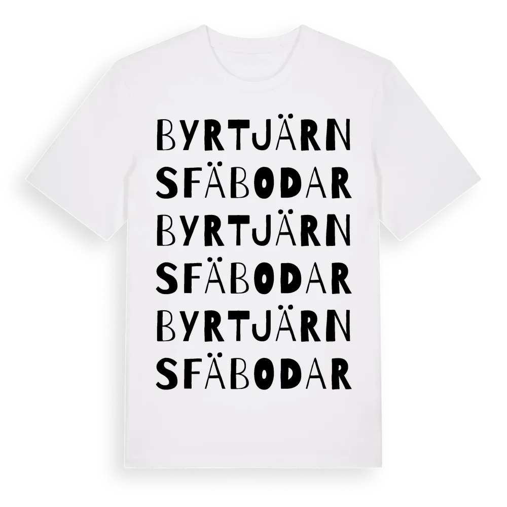 Byrtjärns Fäbodar ordlek t-shirt är inspirerad av Byrtjärns Fäbodar i Dalarnas län, Sverige. Tröjan är designad för dig som har en speciell koppling till platsen – oavsett om du bor här, har rötterna här eller bara älskar Byrtjärns Fäbodar.
