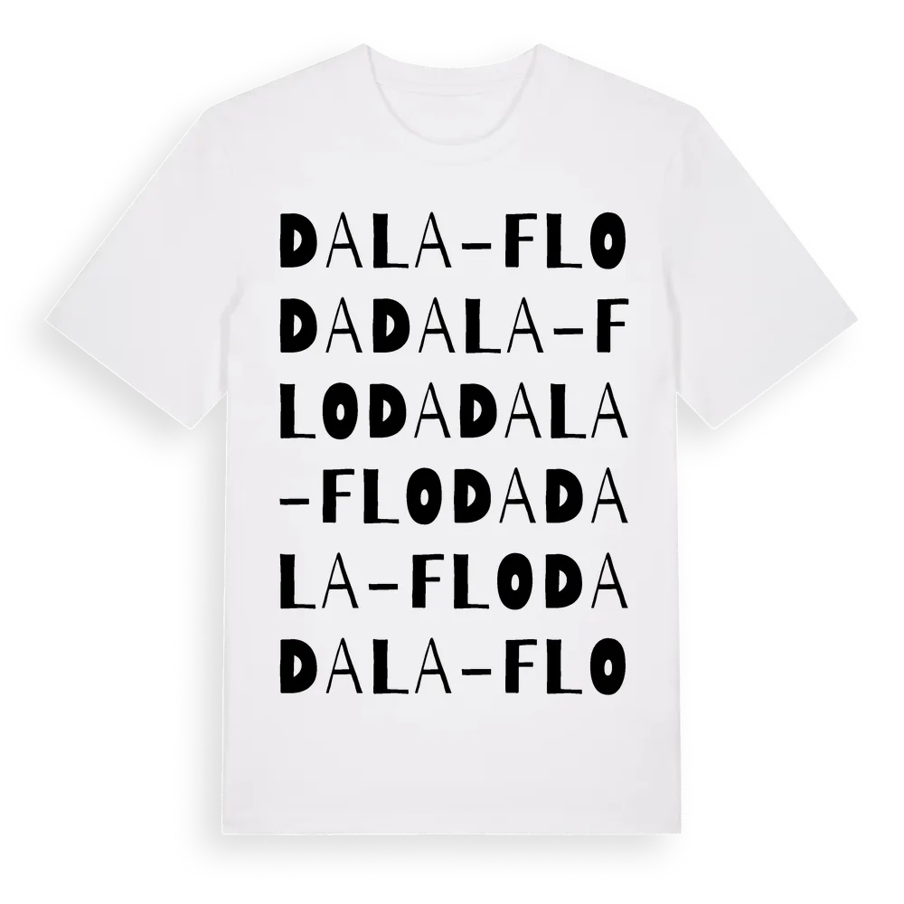 En ordlek byggd på Dala-Flodas namn. Subtilt och klurig – ett motiv som bara de som verkligen känner platsen fullt ut förstår. Premium bomull, unisex – från byn Dala-Floda i Dalarnas län.