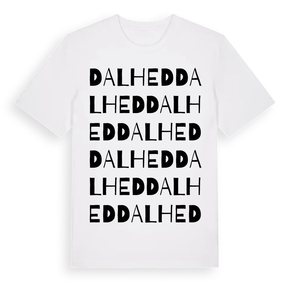 Dalhed ordlek t-shirt är inspirerad av Dalhed i Dalarnas län, Sverige. Tröjan är designad för dig som har en speciell koppling till platsen – oavsett om du bor här, har rötterna här eller bara älskar Dalhed.
