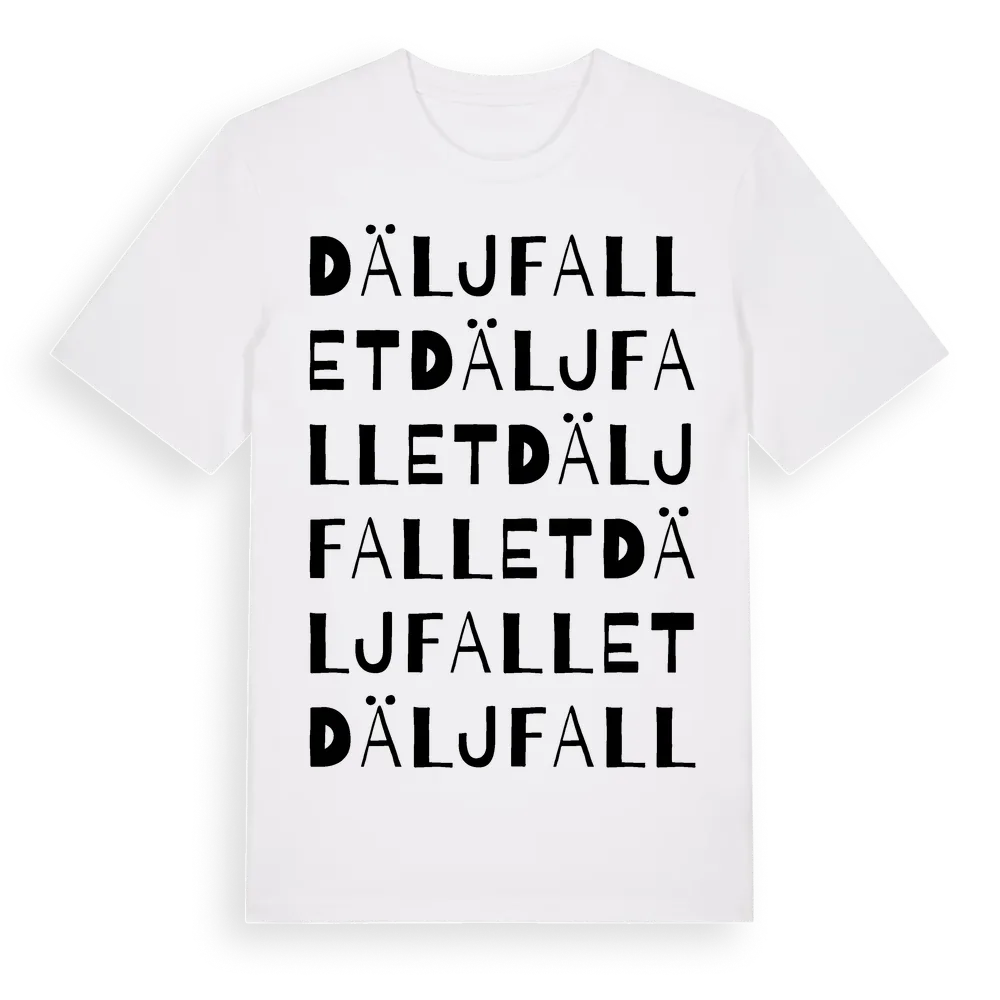 Däljfallet ordlek t-shirt är inspirerad av Däljfallet i Dalarnas län, Sverige. Tröjan är designad för dig som har en speciell koppling till platsen – oavsett om du bor här, har rötterna här eller bara älskar Däljfallet.