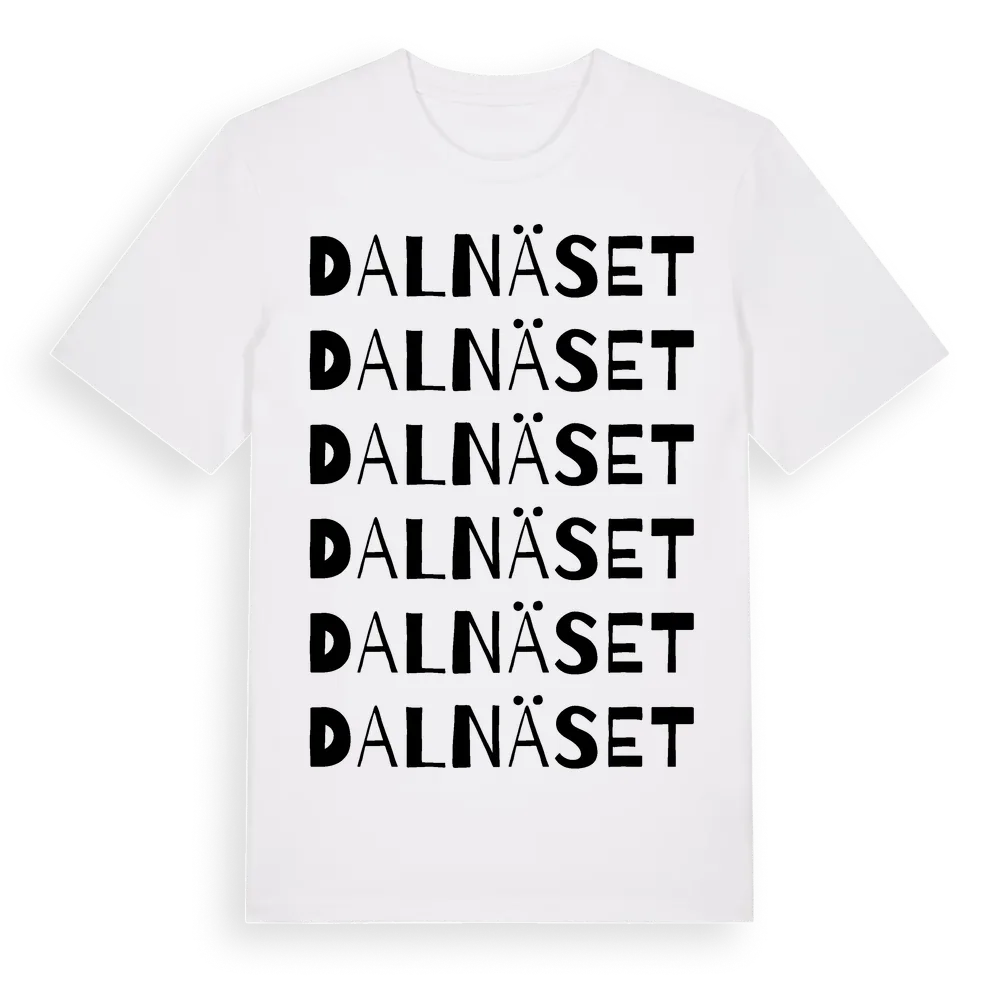 Dalnäset ordlek t-shirt är inspirerad av byn Dalnäset i Dalarnas län, Sverige. Tröjan är designad för dig som har en speciell koppling till platsen – oavsett om du bor här, har rötterna här eller bara älskar Dalnäset.