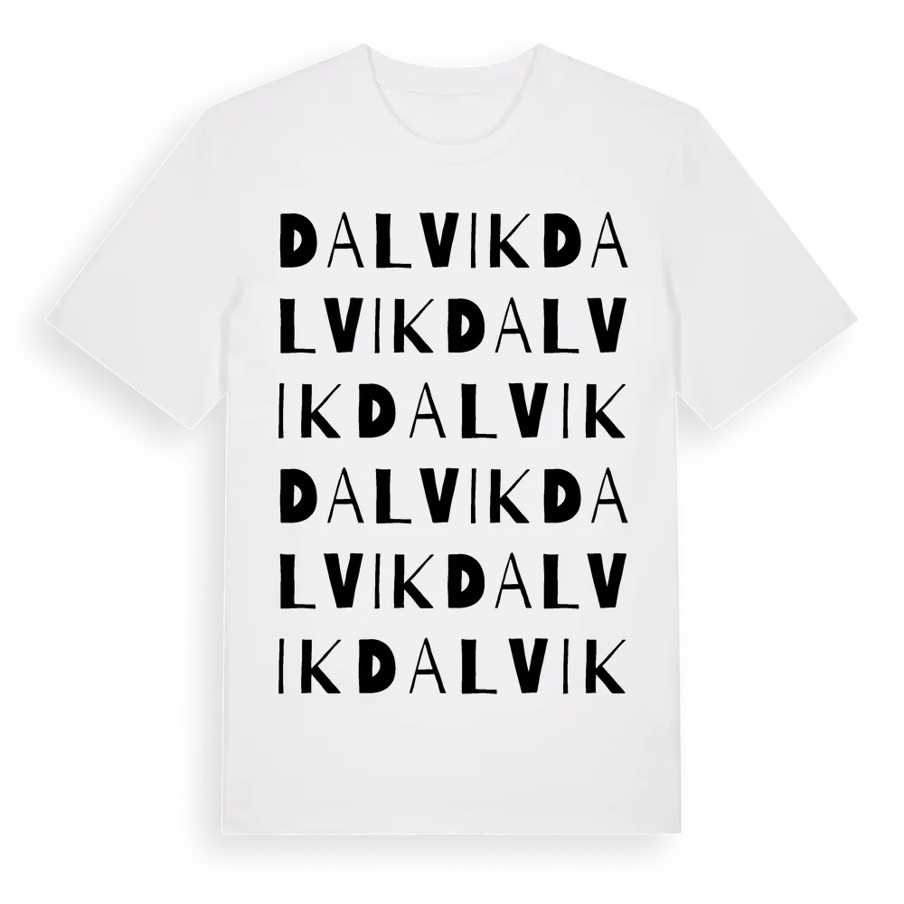 Dalvik ordlek t-shirt är inspirerad av byn Dalvik i Dalarnas län, Sverige. Tröjan är designad för dig som har en speciell koppling till platsen – oavsett om du bor här, har rötterna här eller bara älskar Dalvik.